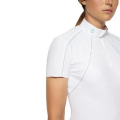 The beautiful light blue color makes the Cavalleria Toscana Girls Team Competition Zip Polo a style standout! The young rider’s long sleeve competition shirt has premium stretch tech fabric, a crisp white poplin show collar, and bold team red stripe logo accents for contemporary style.