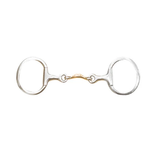 Centaur Quarter Moon Eggbutt is a double jointed stainless steel bit with copper quarter moon center link. The curved lozenge adds targeted tongue pressure and allows clearer cues to the horse.
