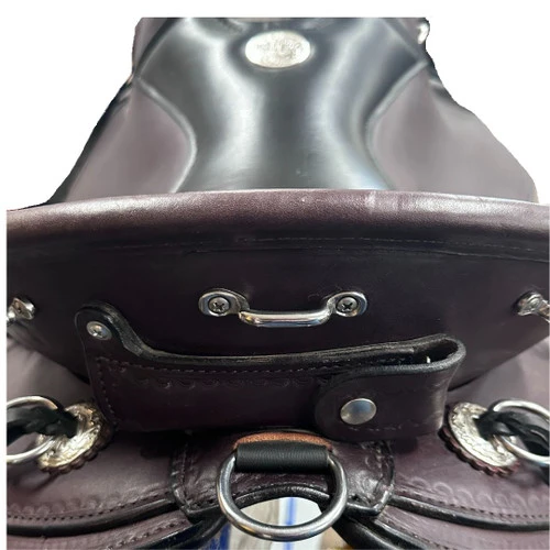 The 1753 Cascade Crossover has adjustable double billet rigging to position the girth to suit each horse’s needs. Leather billet keepers slide down over girth-buckles to balance the rigging and prevent pinching. Please see notes below. A pocket on the cantle includes a hoof pick, which doubles as a flat-head screwdriver to tighten Chicago screws on your tack while on the go. This JG Cascade Crossover Second Saddle is eligible for .