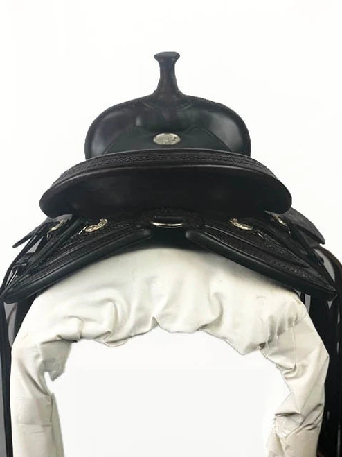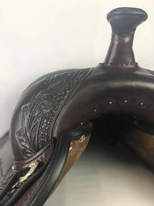 Endorsed by Julie Goodnight, the noted clinician and trainer, The Circle Y Wind River Flex2 Saddle features the innovative technology you want in a trail saddle with the beautiful craftsmanship you’ve come to expect from Circle Y Saddles. Designed with the comfort of both horse and rider in mind, this fantastic Trail Saddle requires almost no break in time and promotes balanced riding. Not only that, it is drop dead gorgeous! The lavish hand tooling, black seat, and walnut leather add up to a luxury look that suits the high end performance.
