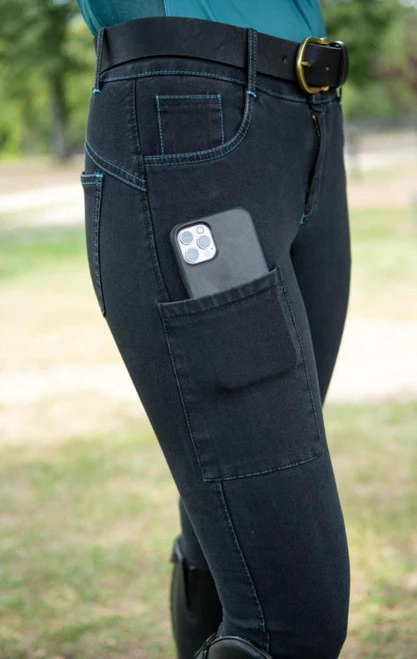 FITS Denim Full Seat Tread Breeches are cute and comfortable with 4-way stretch denim and convenient cargo pocket for your phone. Onyx and Midnight colors with contrast stitching are big on style and the famous FITS fit with gusseted crotch is flattering and practical.