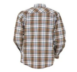Outback Trading Oliver Performance Shirt has so many smart features for convenience and comfort you’ll wonder how you lived without it. OK, maybe not really, but the Oliver Shirt is pretty darn amazing regardless. Men’s western styled button down shirt is ideal for riding, ranch chores, work, office, and travel. The Oliver Performance Shirt has a striking plaid in shades of brown, white, wine, and green that create a rich, warm tone. Antiqued brass style buttons and hidden buttons at the button down collar add distinction and polish. The long sleeves can be rolled up and secured with a tab when you’re ready to get some serious work done. The chest pockets have contrast stitching that gives it a western look and the pocket on the left has a hidden zippered pocket plus an attached microfiber cloth for cleaning glasses. How handy is that!