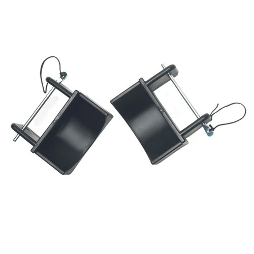 These Polymer Molded Jump Cups feature a curved side for poles with a flatter tray that works with planks. Attached metal pins are included. Black. Set of 2.