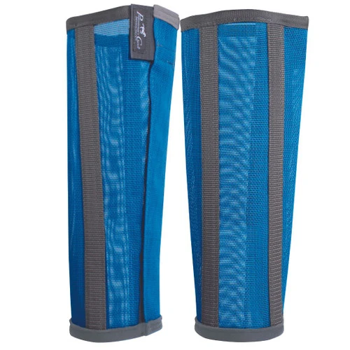 Professional’s Choice Deluxe Fly Boots fasten with hook and loop closures. They are easy to put on and remove and are 1000 Denier mesh for durability. Fly wraps for horse legs are valuable during fly season to keep your horse from stamping their feet to get rid of flies and to prevent bites and skin irritation. This design has proven effective at preventing flies from landing and is comfortable for the horse to wear. Set of 4 Professional’s Choice Deluxe Fly Boots are available in Charcoal grey or Pacific blue.