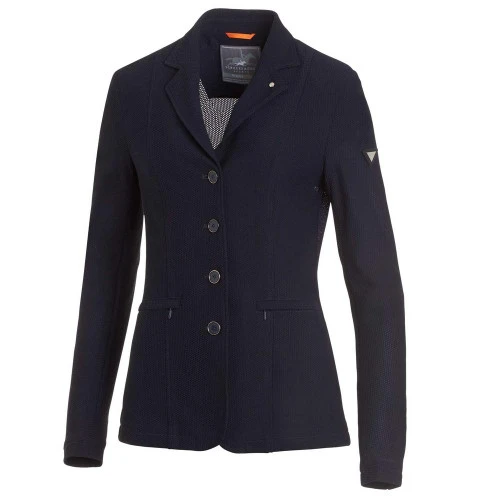 Schockemohle Air Cool Show Jacket delivers show ring style and comfort to keep riders looking sharp and feeling cool. Ladies 4-button equestrian jacket from Schockemohle Sports has a close, athletic fit with stretch for good range of motion. The fabric is ventilating mesh that is ultra breathable, wicking, and quick drying. There are even eyelets under the arms that add extra airflow. The Air Cool Show Jacket from Schockemohle is ideal for hot weather competition.