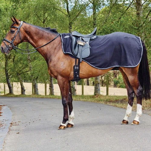 The polyester fleece quarter sheet has anti-static technology to prevent annoying shocks from static electricity, for you and your horse. Classic Black with silver is a timeless look that works well in the warm up ring at horse shows. WeatherBeeta’s Anti-Static Fleece Quarter Sheet is an excellent choice for horses that are clipped in winter and need extra warmth for their muscles. The touch tape closure at the withers allows the rider to put on and remove easily.